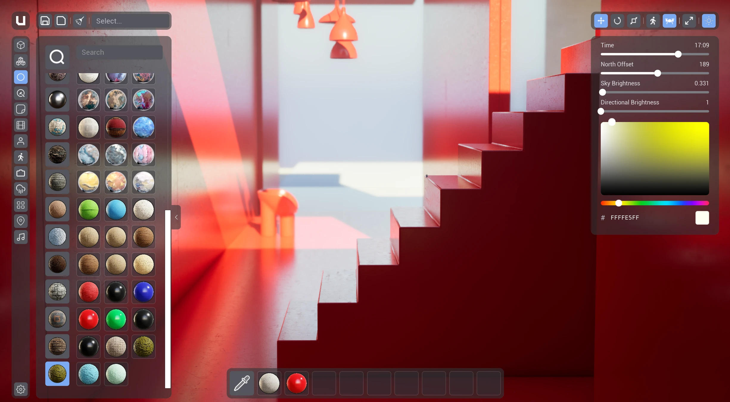 Apply materials to supported objects to vary finishes across walls, floors, and props. Iterate rapidly to fine-tune palettes across the entire room and reinforce the mood of each gallery install.
